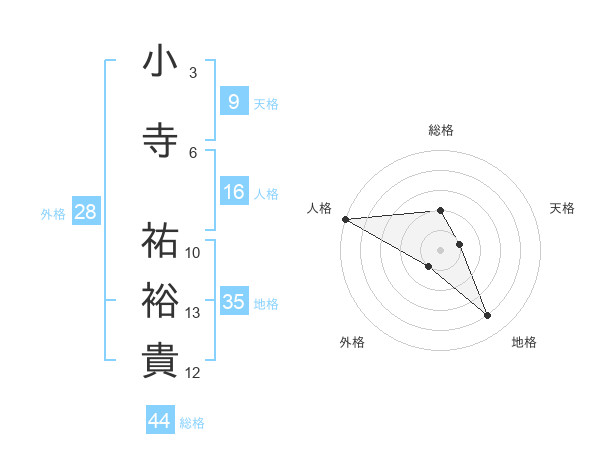 小寺 祐裕貴さんを姓名の画数から五運を鑑定