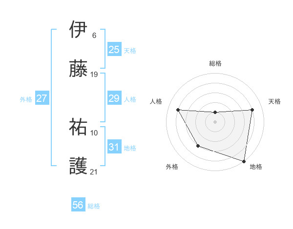 伊藤 祐護さんを姓名の画数から五運を鑑定