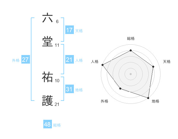 六堂 祐護さんの総格は48画の4点!