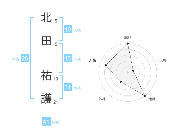 北田 祐護さんの総格は41画の5点!
