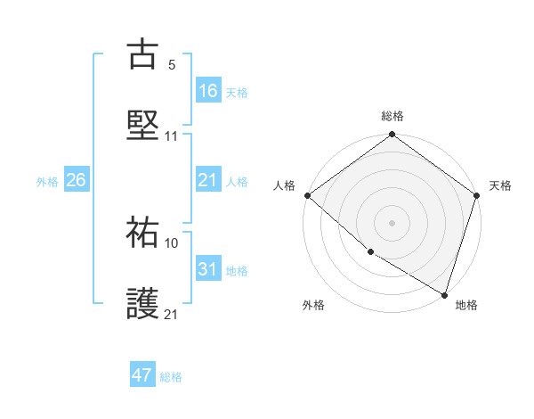 古堅 祐護さんの総格は47画の5点!