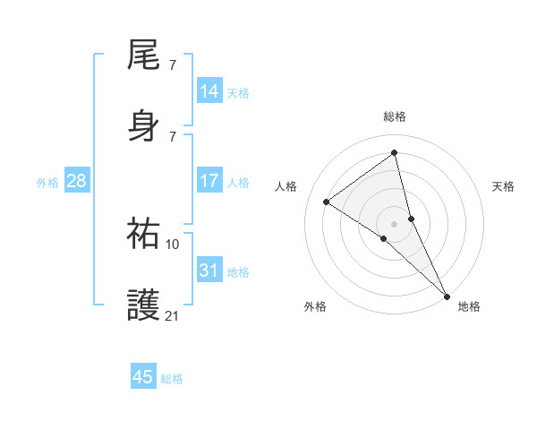 尾身 祐護さんの総格は45画の4点!