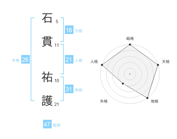 石貫 祐護さんを姓名の画数から五運を鑑定