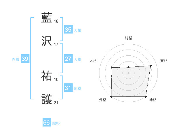 藍沢 祐護さんの総格は66画の1点!