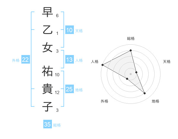 早乙女 祐貴子さんを姓名の画数から五運を鑑定
