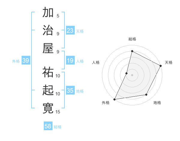 加治屋 祐起寛さんを姓名の画数から五運を鑑定