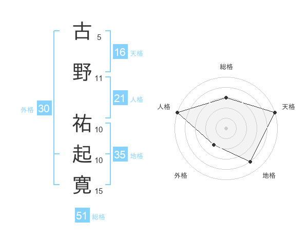 古野 祐起寛さんを姓名の画数から五運を鑑定