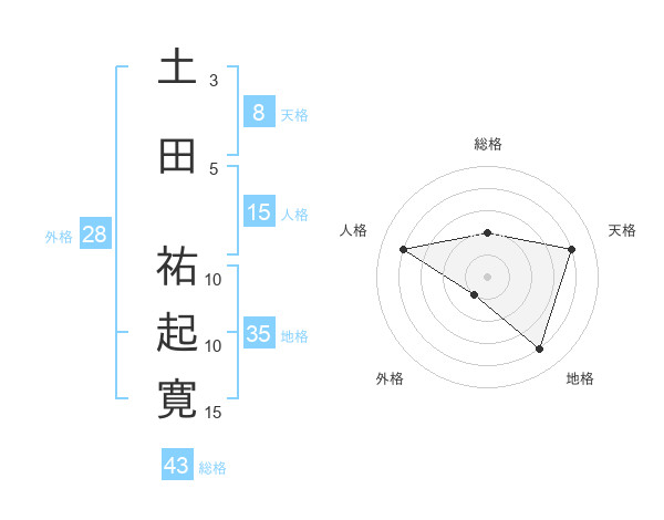 土田 祐起寛さんを姓名の画数から五運を鑑定