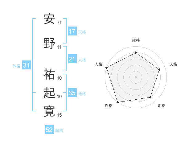安野 祐起寛さんを姓名の画数から五運を鑑定