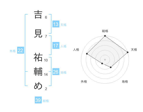 吉見 祐輔めさんを姓名の画数から五運を鑑定