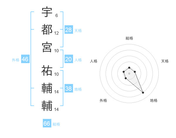 宇都宮 祐輔輔さんの総格は66画の1点!