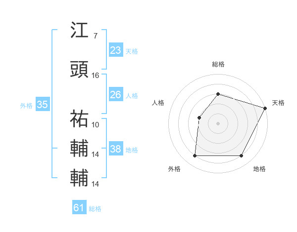 江頭 祐輔輔さんの総格は61画の3点!