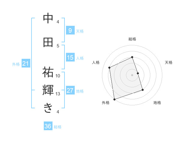 中田 祐輝きさんを姓名の画数から五運を鑑定