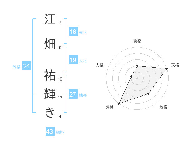 江畑 祐輝きさんを姓名の画数から五運を鑑定