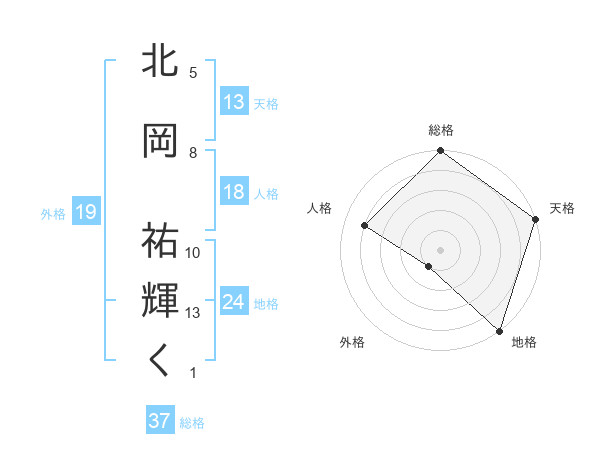 北岡 祐輝くさんを姓名の画数から五運を鑑定