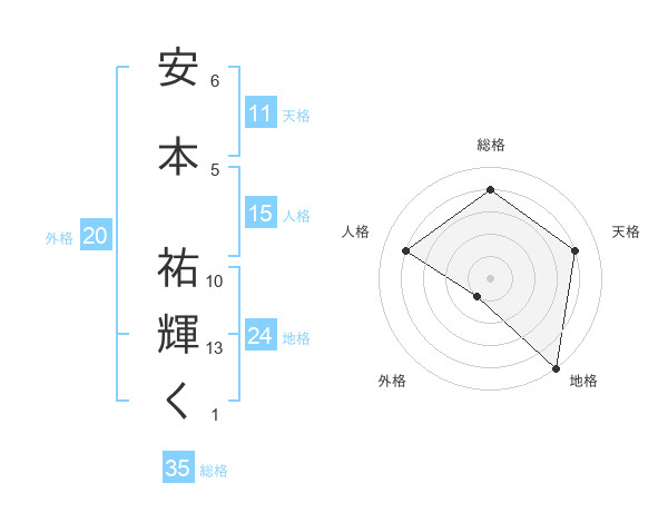 安本 祐輝くさんを姓名の画数から五運を鑑定