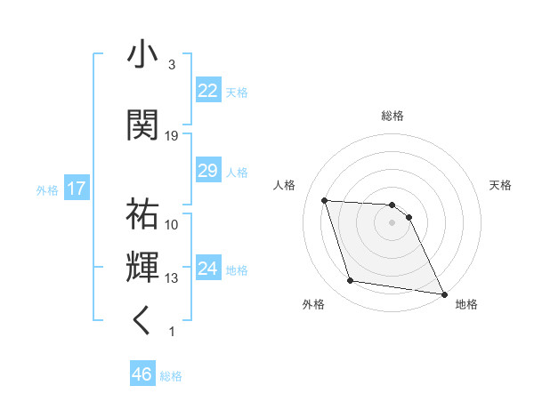 小関 祐輝くさんを姓名の画数から五運を鑑定