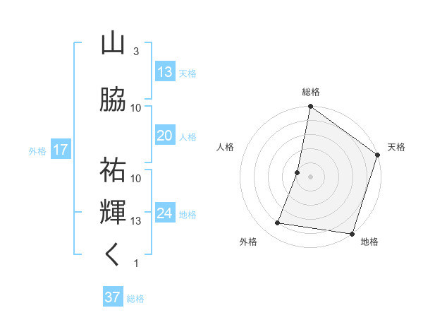 山脇 祐輝くさんを姓名の画数から五運を鑑定