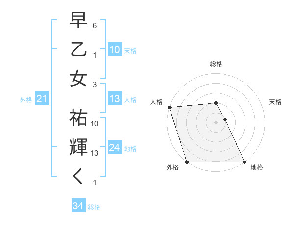 早乙女 祐輝くさんの総格は34画の2点!