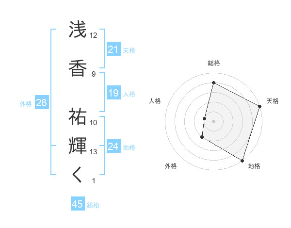 浅香 祐輝くさんの総格は45画の4点!
