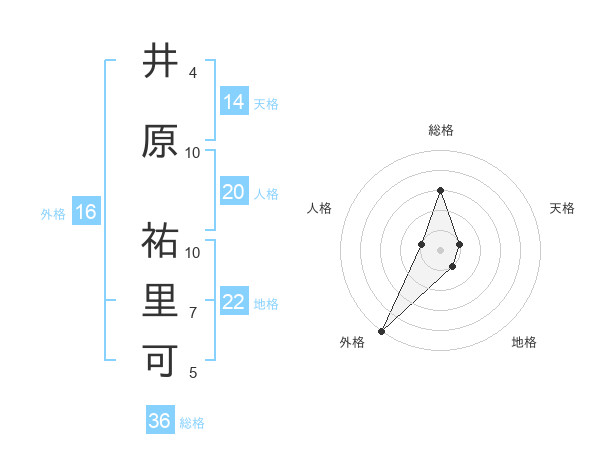 井原 祐里可さんを姓名の画数から五運を鑑定
