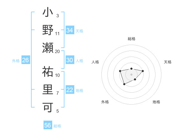 小野瀬 祐里可さんを姓名の画数から五運を鑑定
