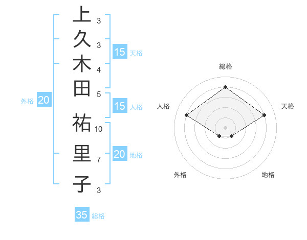 上久木田 祐里子さんの総格は35画の4点!