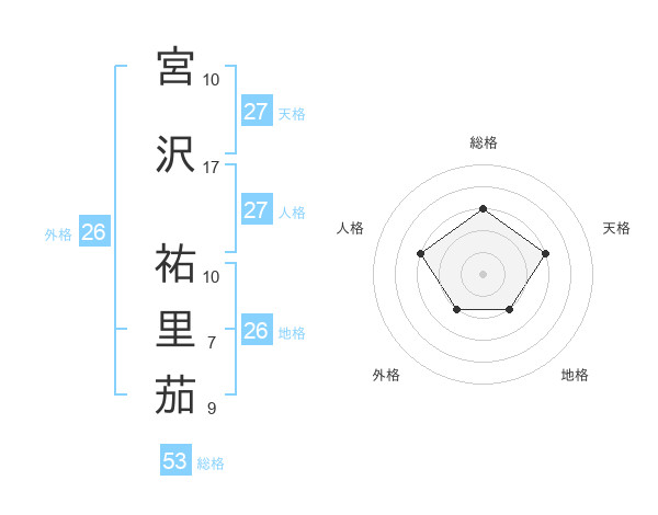 宮沢 祐里茄さんを姓名の画数から五運を鑑定