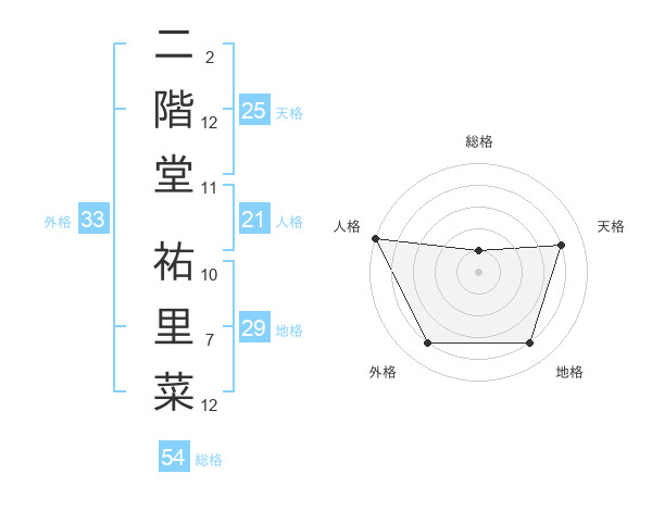 二階堂 祐里菜さんを姓名の画数から五運を鑑定