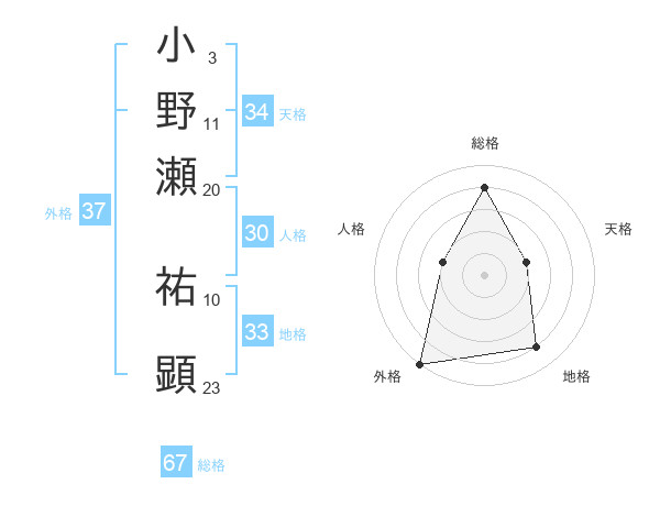 小野瀬 祐顕さんを姓名の画数から五運を鑑定