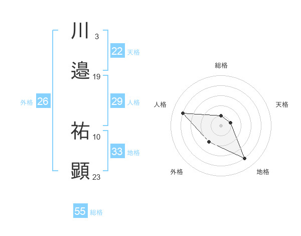 川邉 祐顕さんの総格は55画の1点!