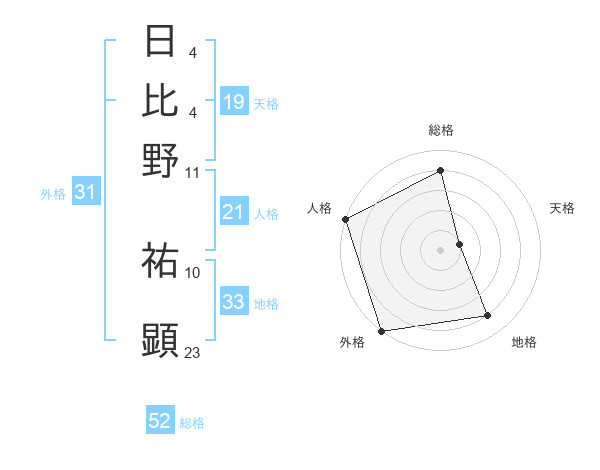 日比野 祐顕さんを姓名の画数から五運を鑑定