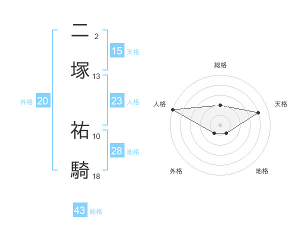 二塚 祐騎さんを姓名の画数から五運を鑑定