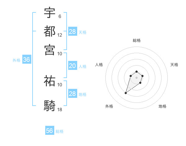 宇都宮 祐騎さんを姓名の画数から五運を鑑定