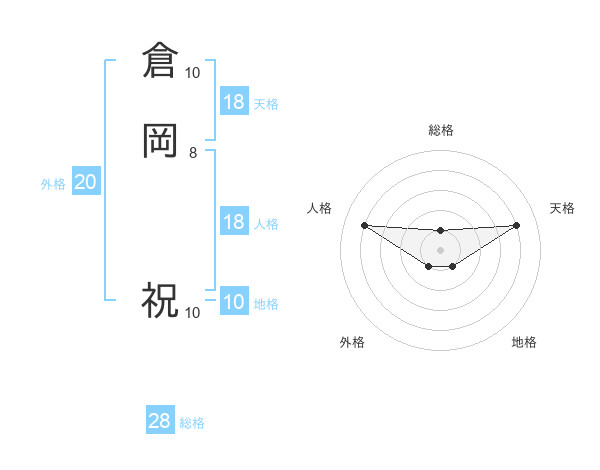 倉岡 祝さんの総格は28画の1点!
