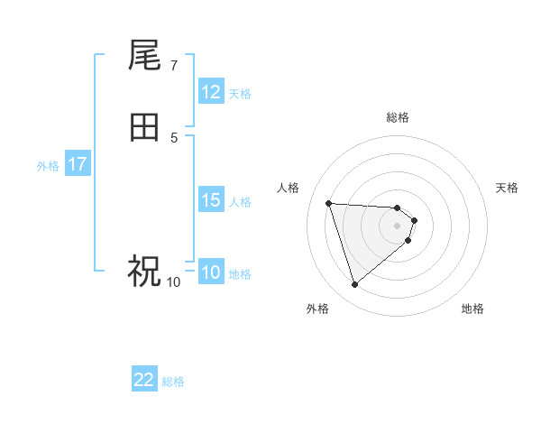 尾田 祝さんの総格は22画の1点!