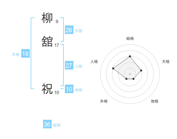 柳舘 祝さんを姓名の画数から五運を鑑定