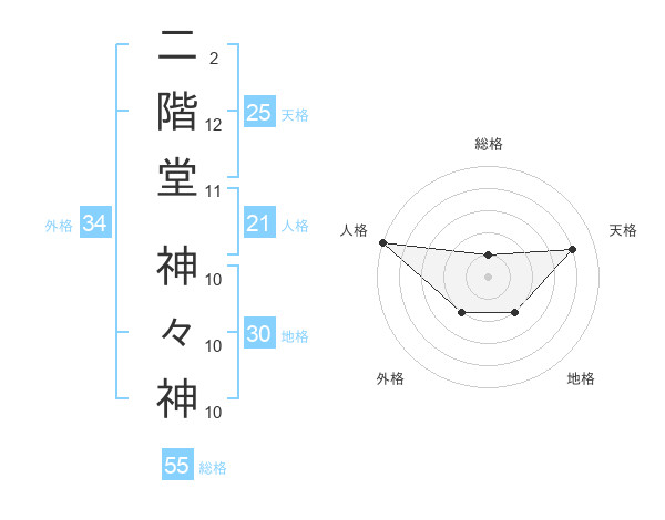 二階堂 神々神さんを姓名の画数から五運を鑑定