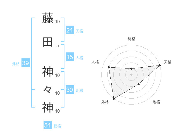 藤田 神々神さんを姓名の画数から五運を鑑定