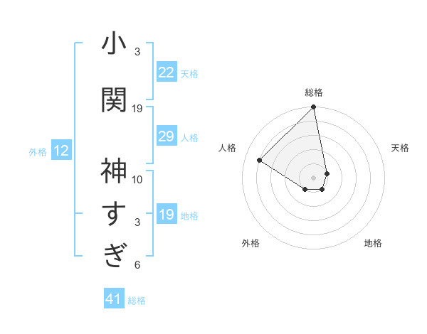 小関 神すぎさんの総格は41画の5点!