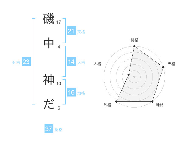 磯中 神ださんの総格は37画の5点!