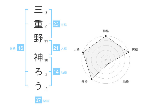 三重野 神ろうさんを姓名の画数から五運を鑑定