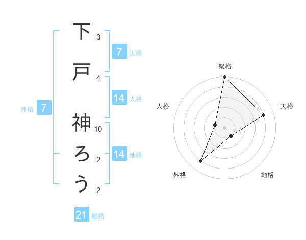 下戸 神ろうさんを姓名の画数から五運を鑑定