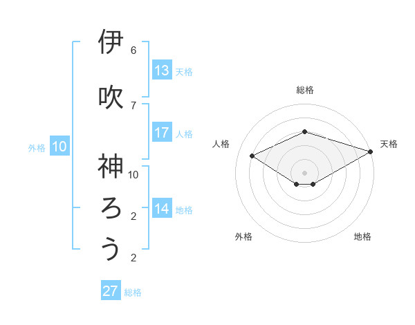 伊吹 神ろうさんの総格は27画の3点!