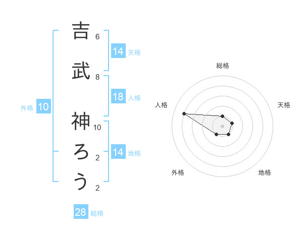 吉武 神ろうさんの総格は28画の1点!