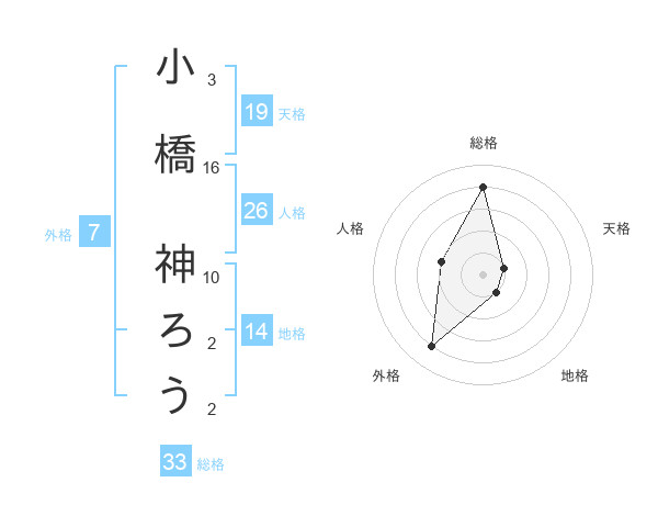小橋 神ろうさんを姓名の画数から五運を鑑定