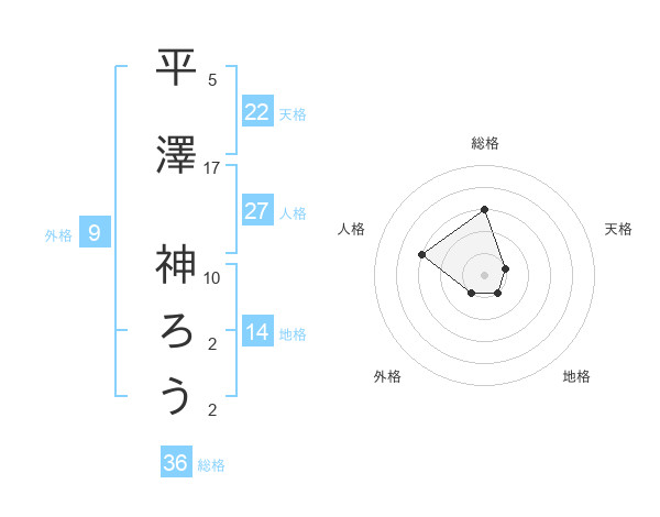 平澤 神ろうさんを姓名の画数から五運を鑑定