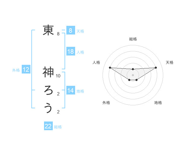 東 神ろうさんの総格は22画の1点!
