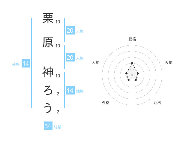 栗原 神ろうさんを姓名の画数から五運を鑑定