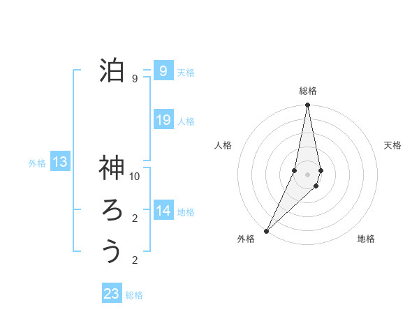 泊 神ろうさんの総格は23画の5点